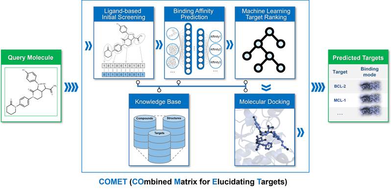 近年来,熟女探花 王任小团队开发了一种名为COMET(Combined Matrix for Elucidating Targets)的反向钓靶预测算法。该研究构建了一个包含配体相似性评分、基于结构的结合亲和力预测以及分子对接的组合式框架,并通过机器学习算法实现了靶标的高精度排序。日前,该项工作以“COMET: A Machine-Learning Framework Integrating Ligand-Based and Target-Based Algorithms for Elucidating Drug Targets”为论文标题,在线发表在药物化学领域权威期刊Journal of Medicinal Chemistry上。