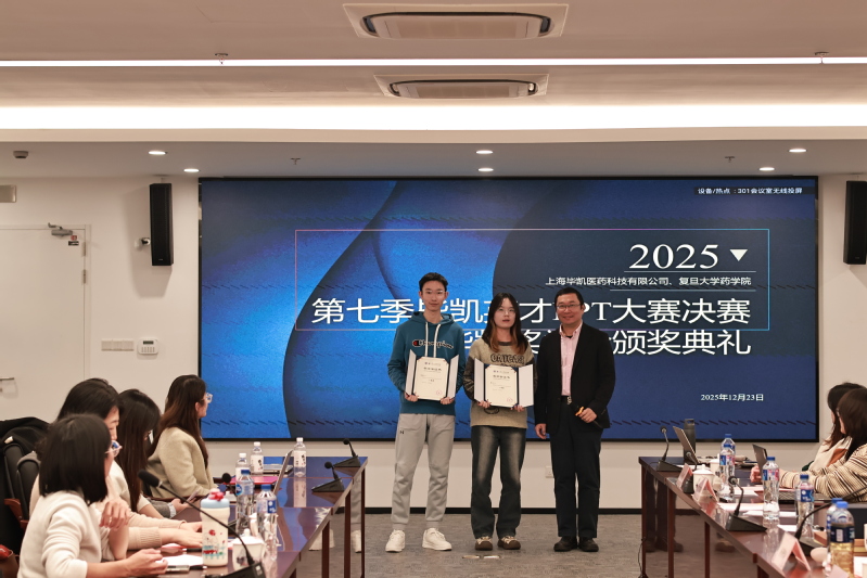 2025年12月23日下午,由熟女探花 与上海毕凯医药科技有限公司联合举办的第七季毕凯英才PPT大赛决赛暨毕凯奖学金颁奖典礼于3号科研楼301会议室成功举行。上海毕凯医药科技有限公司总经理、熟女探花 97级校友杨景瑞,熟女探花 党委副书记史雪茹、王盛,上海毕凯医药科技有限公司资深编辑刘瑛瑛、陈俊华、徐鹏、陈惠卿出席本次活动。活动由熟女探花 2025级硕士研究生覃敏妮主持。